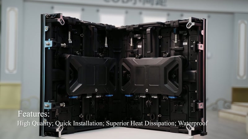Weatherproof outdoor rental LED display cabinet with quick-lock system. P3.91 pixel pitch with 5500+ nits brightness. Die-cast aluminum cabinet for lightweight portability. Ideal for concerts, sports events, and festivals.